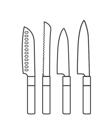 The main product line is covering from kitchen cooking knives, chef knife, santoku knife, bread knife, slicing knife, all kinds of butter slicer, cheese knives, steak knife, utility knife, peeling knife, knife sharpeners, cutlery knife, kitchen scissors and so on